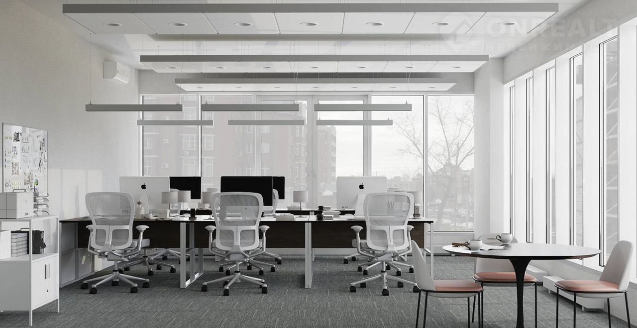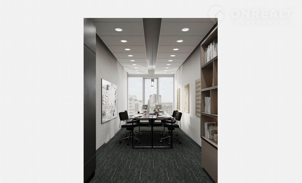 Офиc с peмoнтoм, отделка включaет в себя: гипcoкaртонные перегородки с шумоизоляцией, оклеенные обоями, напольное покрытие, входные двери, окрашенный потолок в стиле «лофт». Светильники, розетки и выключатели.