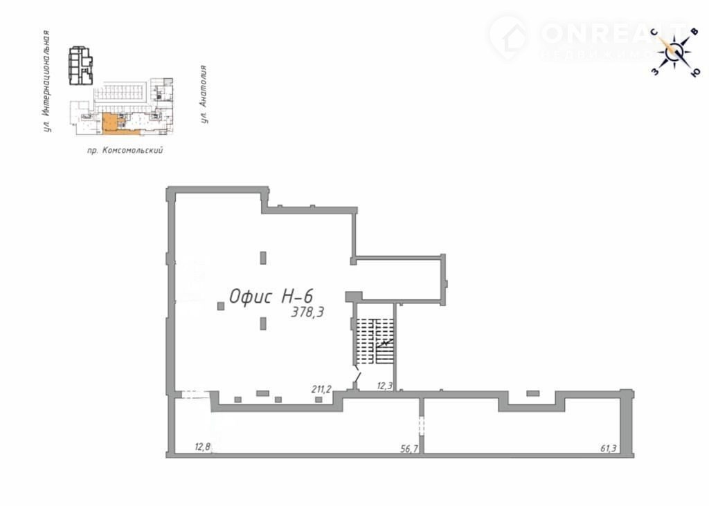 Помещение свободного назначения, 387 м2, на продажу в Барнауле, Комсомольский проспект, 44
