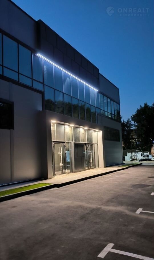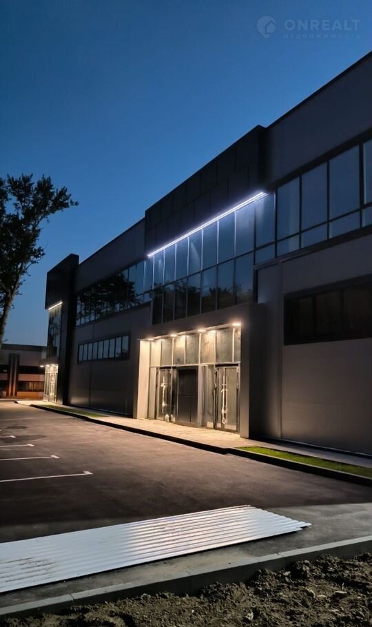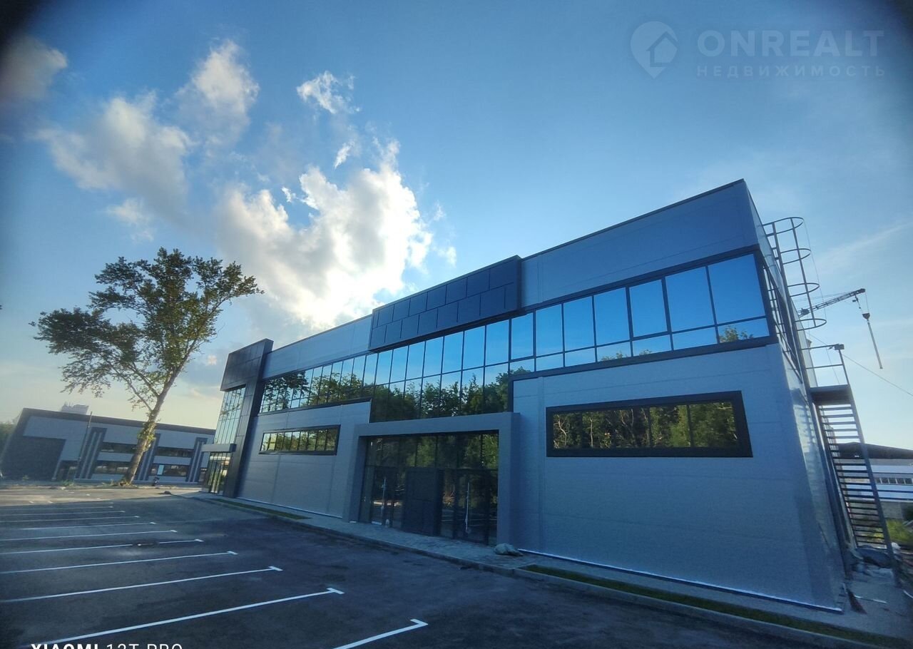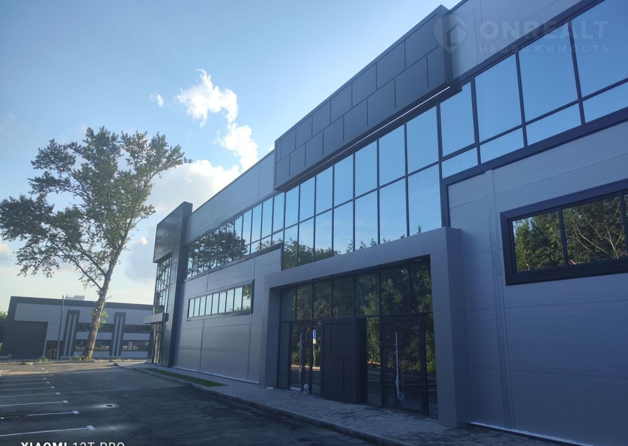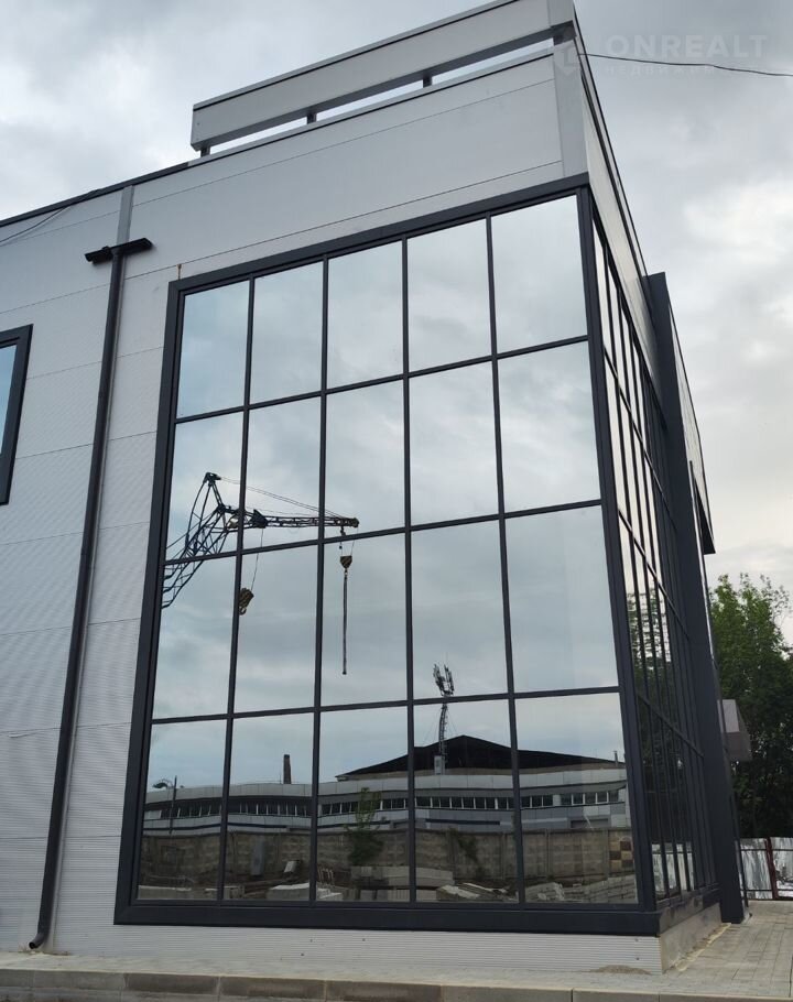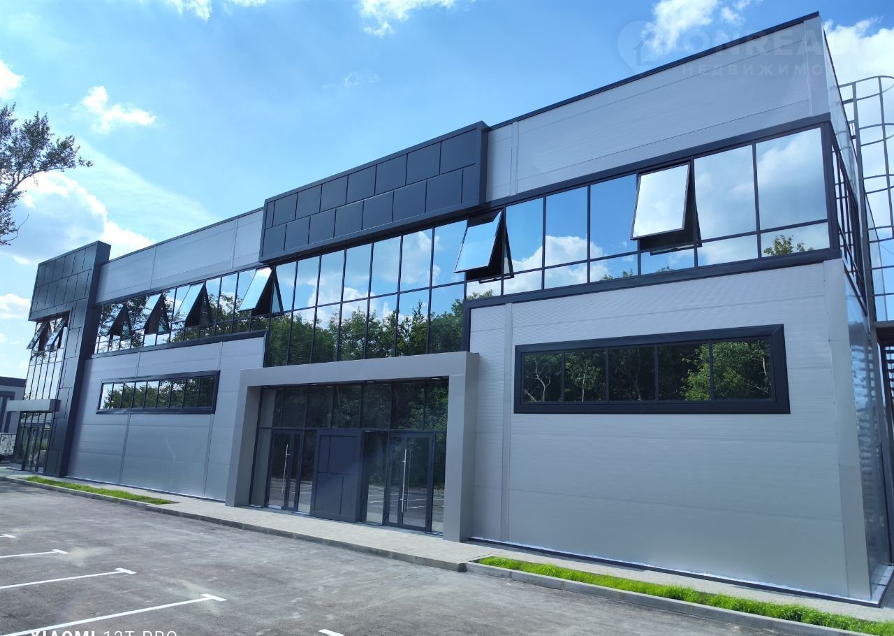 Конструктив здания выполнен из железобетона, стены из сэндвич-панелей с панорамным остеклением, промышленные полы, двое ворот шириной 3800 высотой 4300, высота первого этажа 5,4 м, высота второго этажа 3,3 м. Свободная планировка. Хорошая транспортная доступность, большая парковка с достаточным количеством парковочных мест.