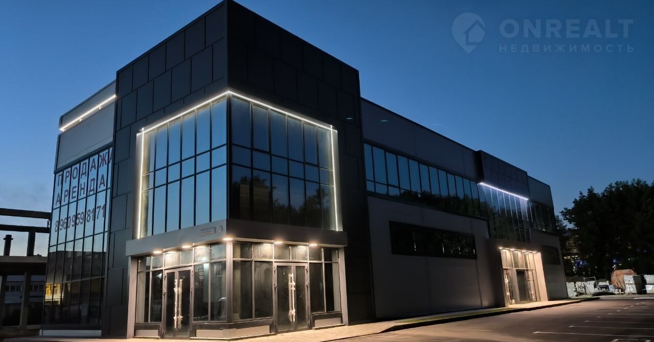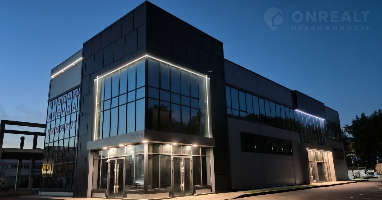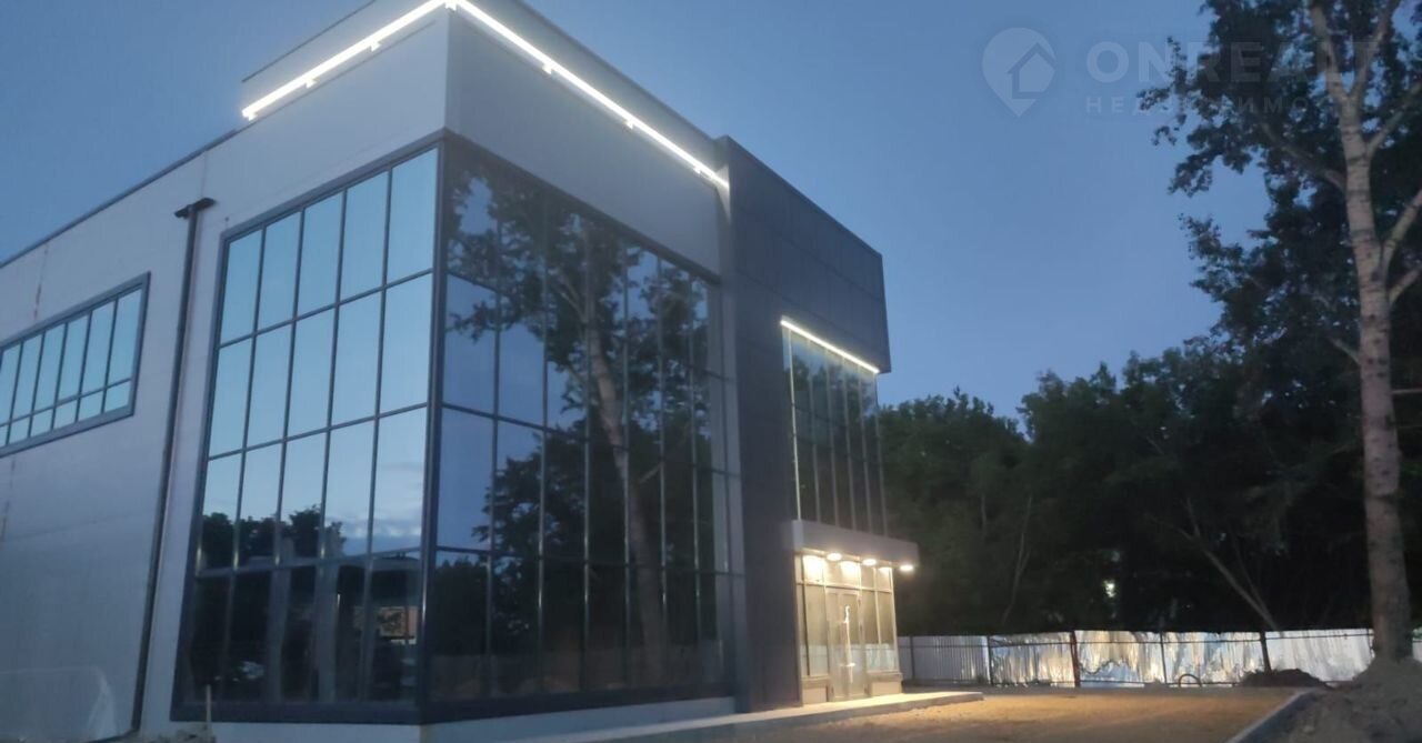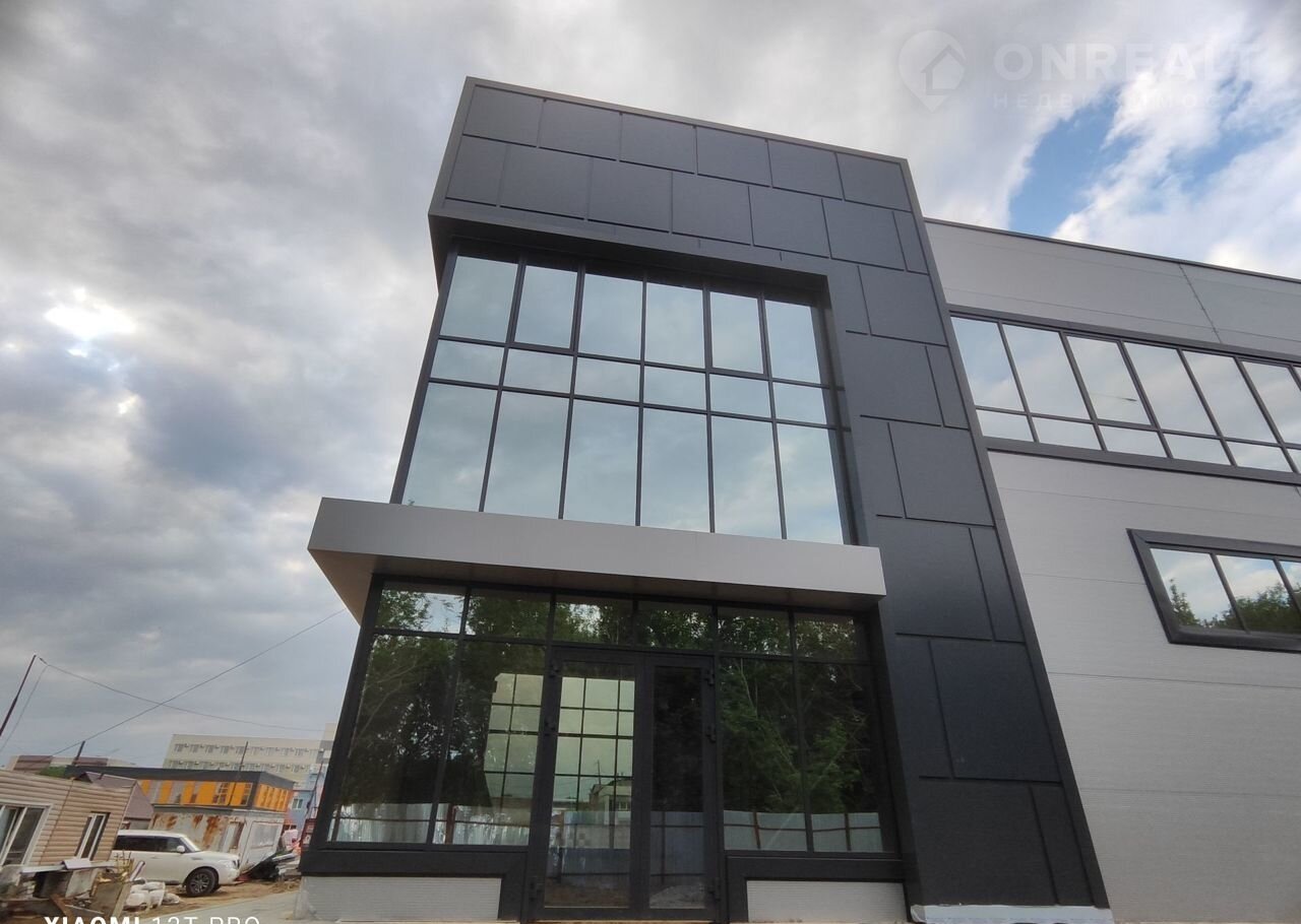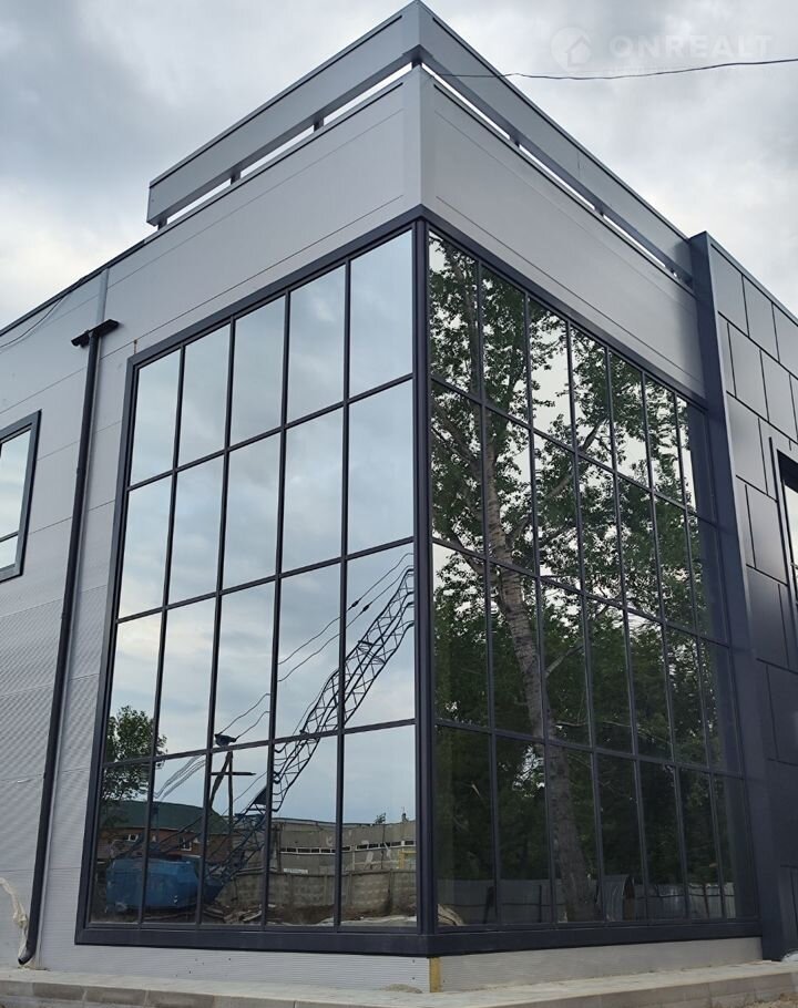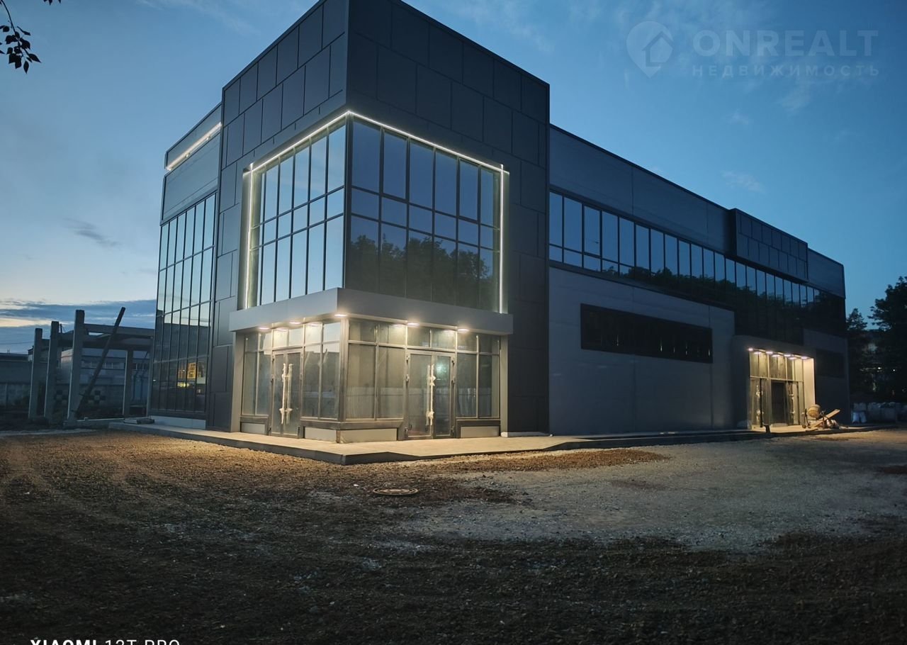 Конструктив здания выполнен из железобетона, стены из сэндвич-панелей с панорамным остеклением, промышленные полы, двое ворот шириной 3800 высотой 4300, высота первого этажа 5,4 м, высота второго этажа 3,3 м. Свободная планировка. Хорошая транспортная доступность, большая парковка с достаточным количеством парковочных мест.