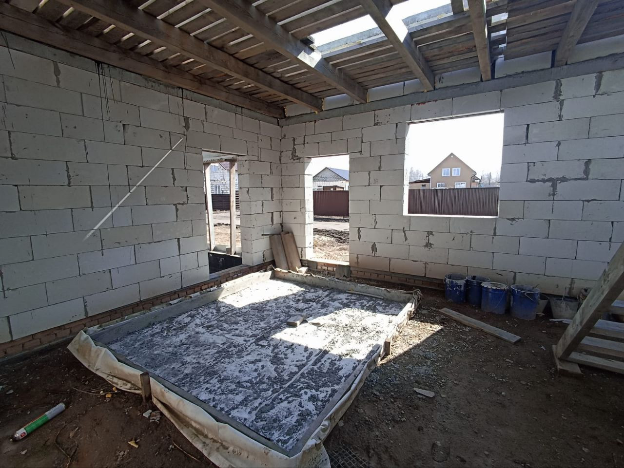 Участок с почти построенным домом. В наличии полный пакет документов: разрешение на строительство, профессиональный проект и другие документы. Также в наличии материал на достройку крыши: газобетон, дерево, метало черепица. Приобретены окна и оконно-дверной блок для выхода на терасу нужно только установить. К дому подведены все коммуникации: Газ, электричество. Водоснабжение(пробурена скважина, канализованные две выгребные ямы из бетонных колец с переливом).
