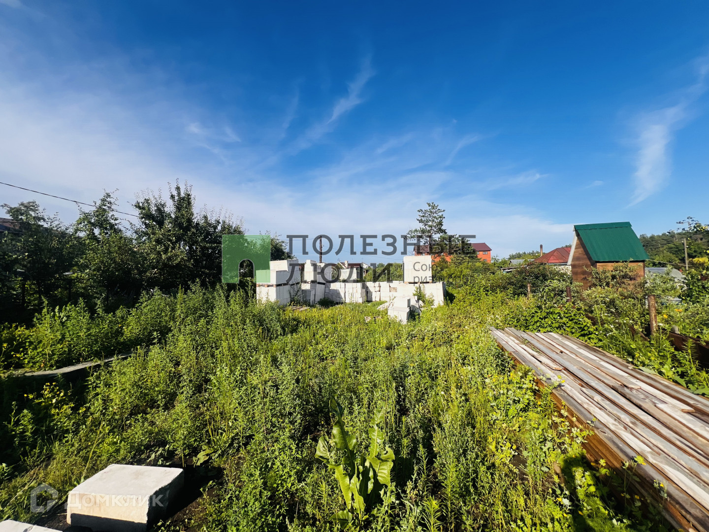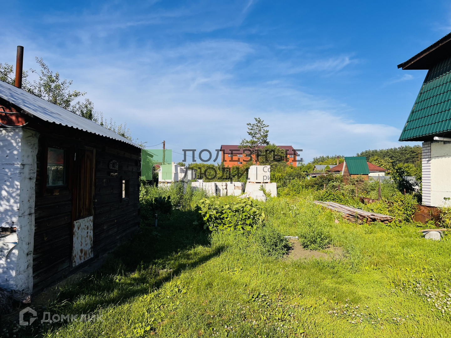 На участке есть баня свежая, стройматериал 60 кубов сибит для строительства дома.
