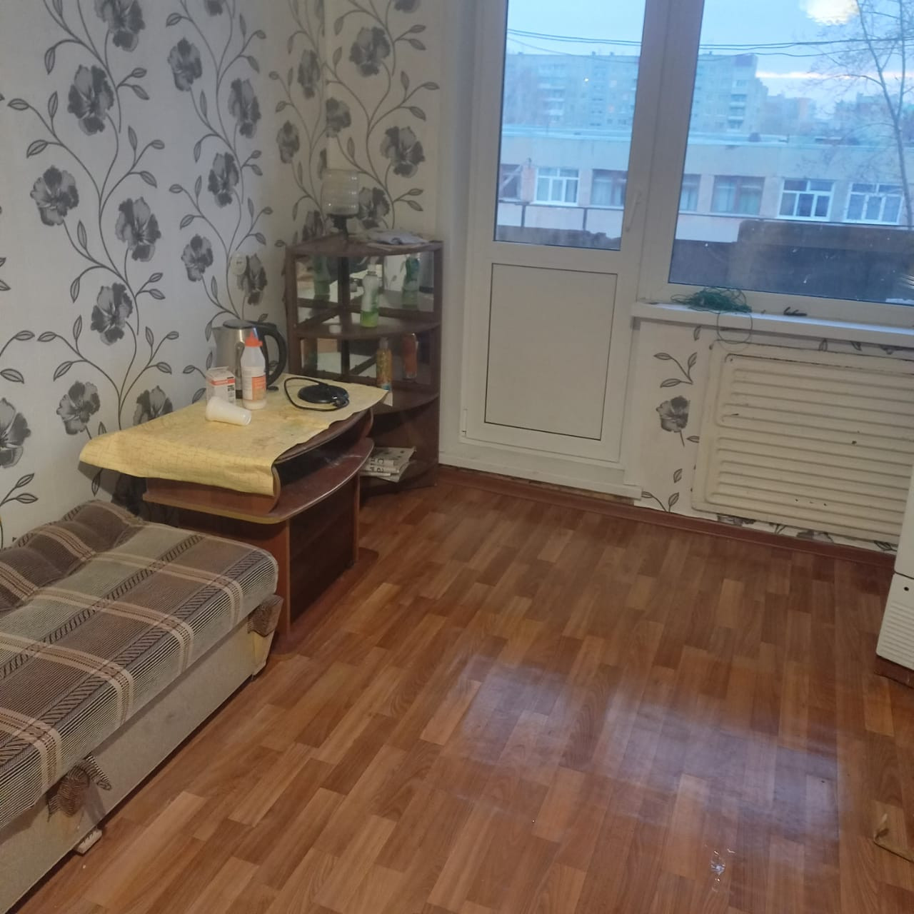 В соседней комнате никто не живет, в двух других проживают. Спальный район. Отличный этаж. Покажу в любое время. Звоните.