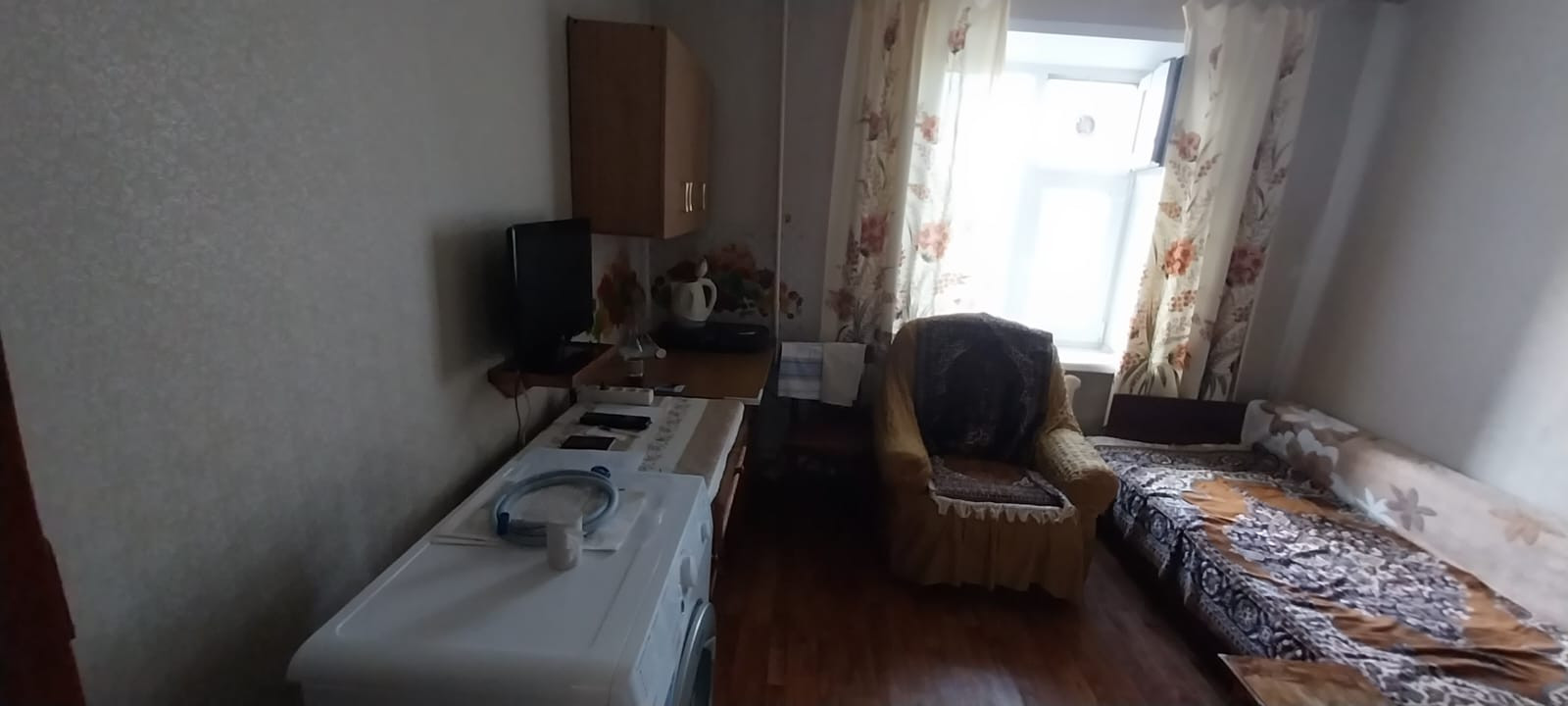 Сдается комната в секции на 4 хозяина,  с мебелью и бытовой техникой. Все как на фото.  Желательно женщину или пару. Посредник, оплата по факту заселения.