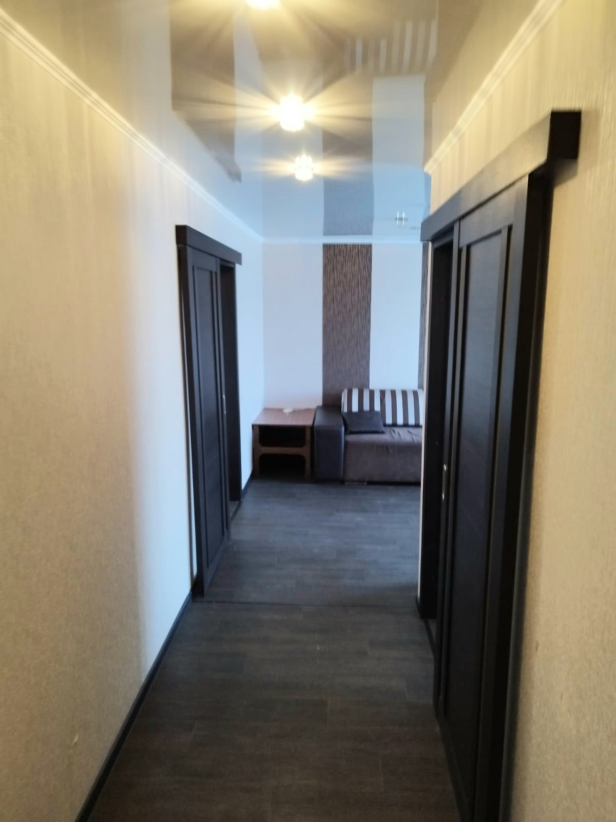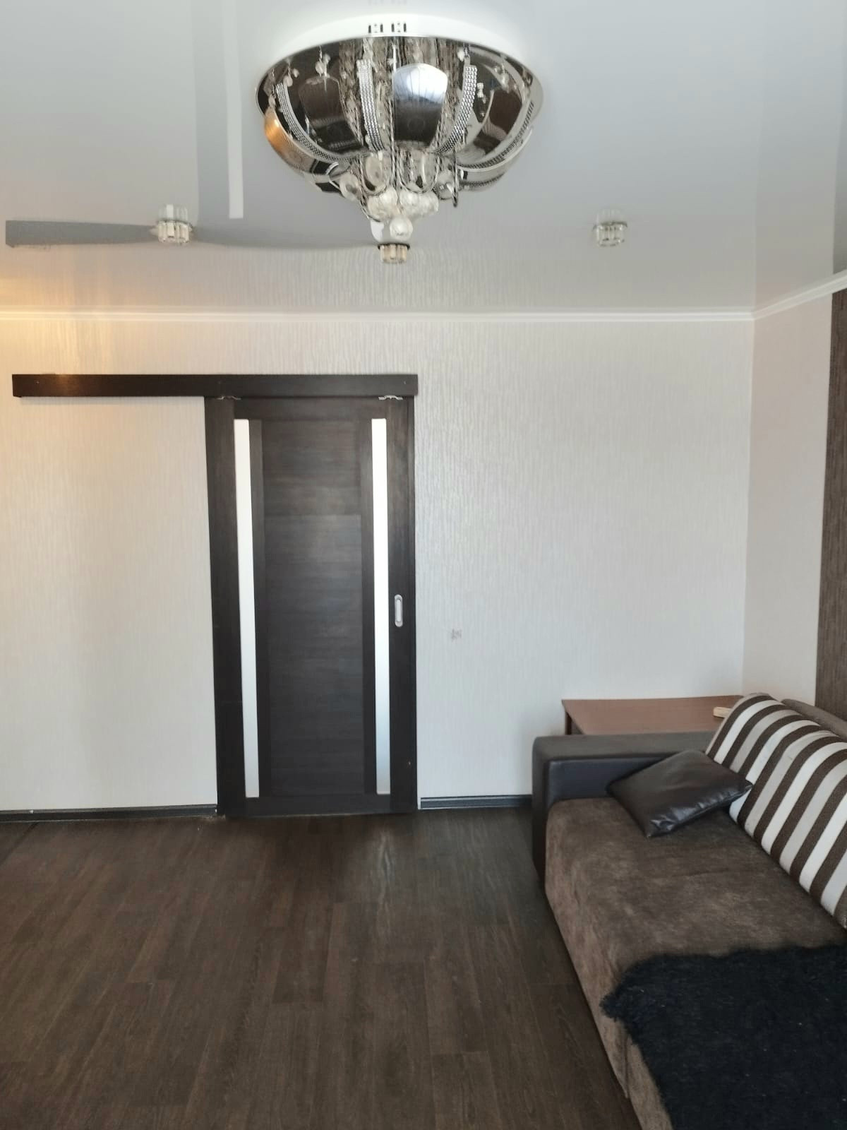 две отдельные комнаты (взрослая и детская спальные комнаты) и гостинная, в комнаты раздвижные двери,