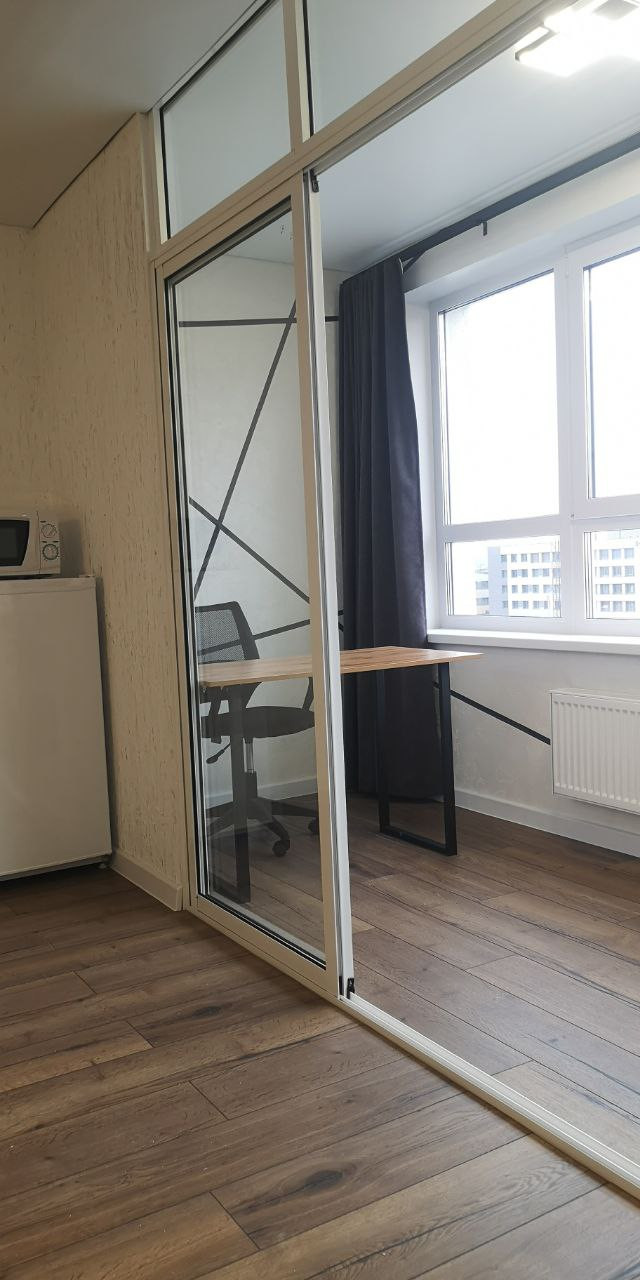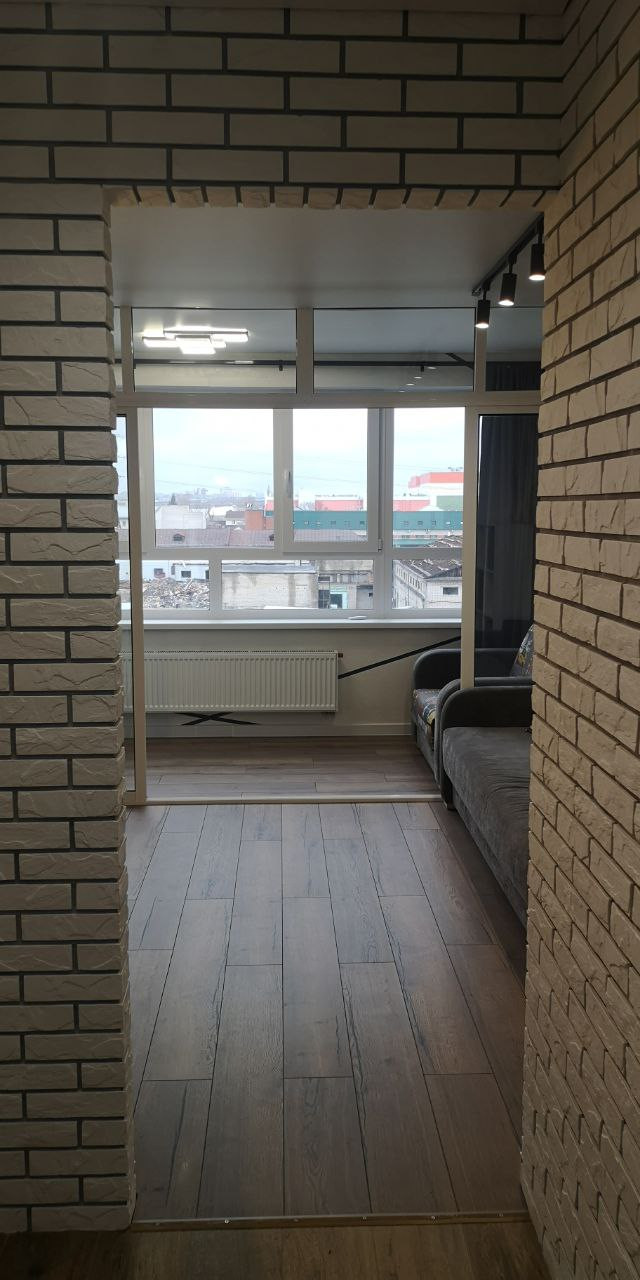 Выполнен свежий дизайнерский ремонт. Новая стильная мебель и современная бытовая техника, все в точности как на фото. Просторная гардеробная-кладовая. Лоджия организована как часть жилой зоны. Обустроено рабочее/учебное место с видом на город. Большие окна вдоль всей стены и плотные шторы. Оборудована всем необходимым для комфортной жизни.