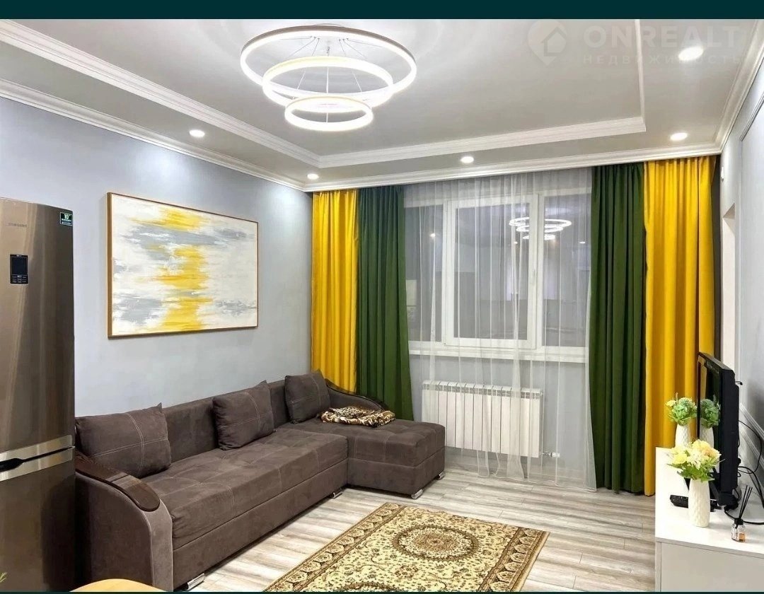 В жилом комплексе "Новая высота", после ремонта. Светлая, теплая с мебелью. Комнаты изолированы.