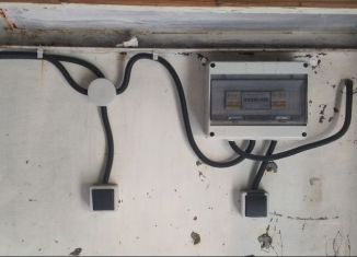 Проведено освещение, розетки. Есть полки и два навесных шкафа с левой стороны выпилен проем для двери , можно заварить . Торг |