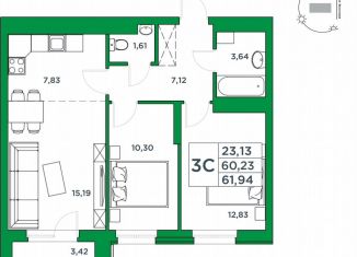 Общая площадь: 60.2 м2