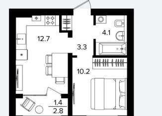 Продажа однокомнатной квартиры, 36.3 м2, улица Ахметова