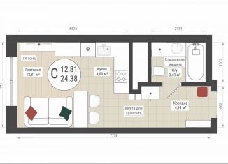 Общая площадь: 24.4 м2