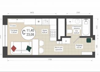 Общая площадь: 23 м2