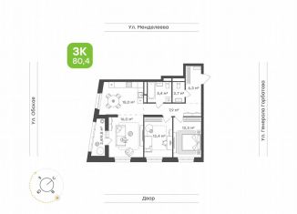Продажа трехкомнатной квартиры, 87.7 м2