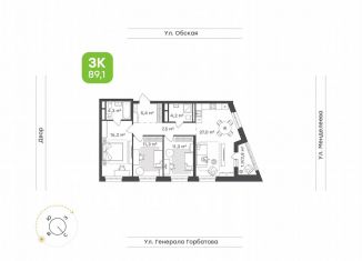 Продается трехкомнатная квартира, 89.1 м2