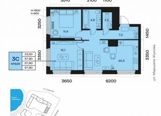 Общая площадь: 57.9 м2