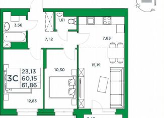 Продается 2-комнатная квартира, 59.9 м2
