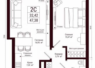 Продажа 2-комнатной квартиры, 47.4 м2