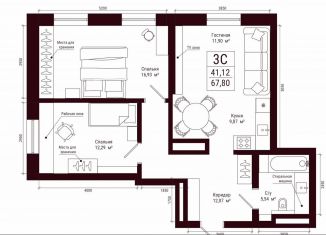 Общая площадь: 67.8 м2