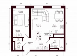 Продажа 2-ком. квартиры, 51.1 м2