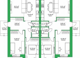 Продажа таунхауса, 75.9 м2, Зелёная улица