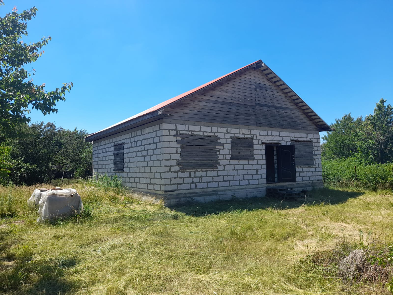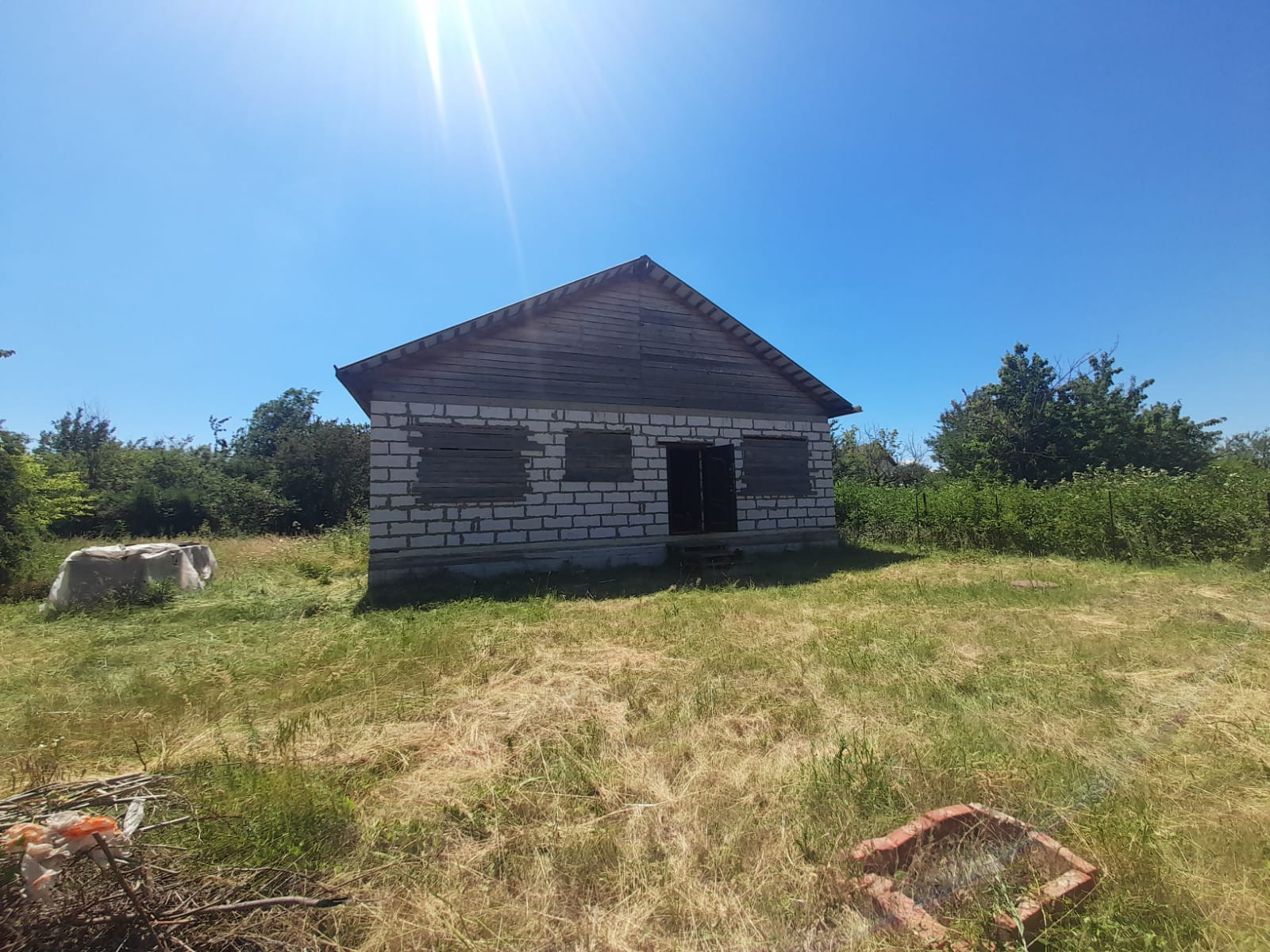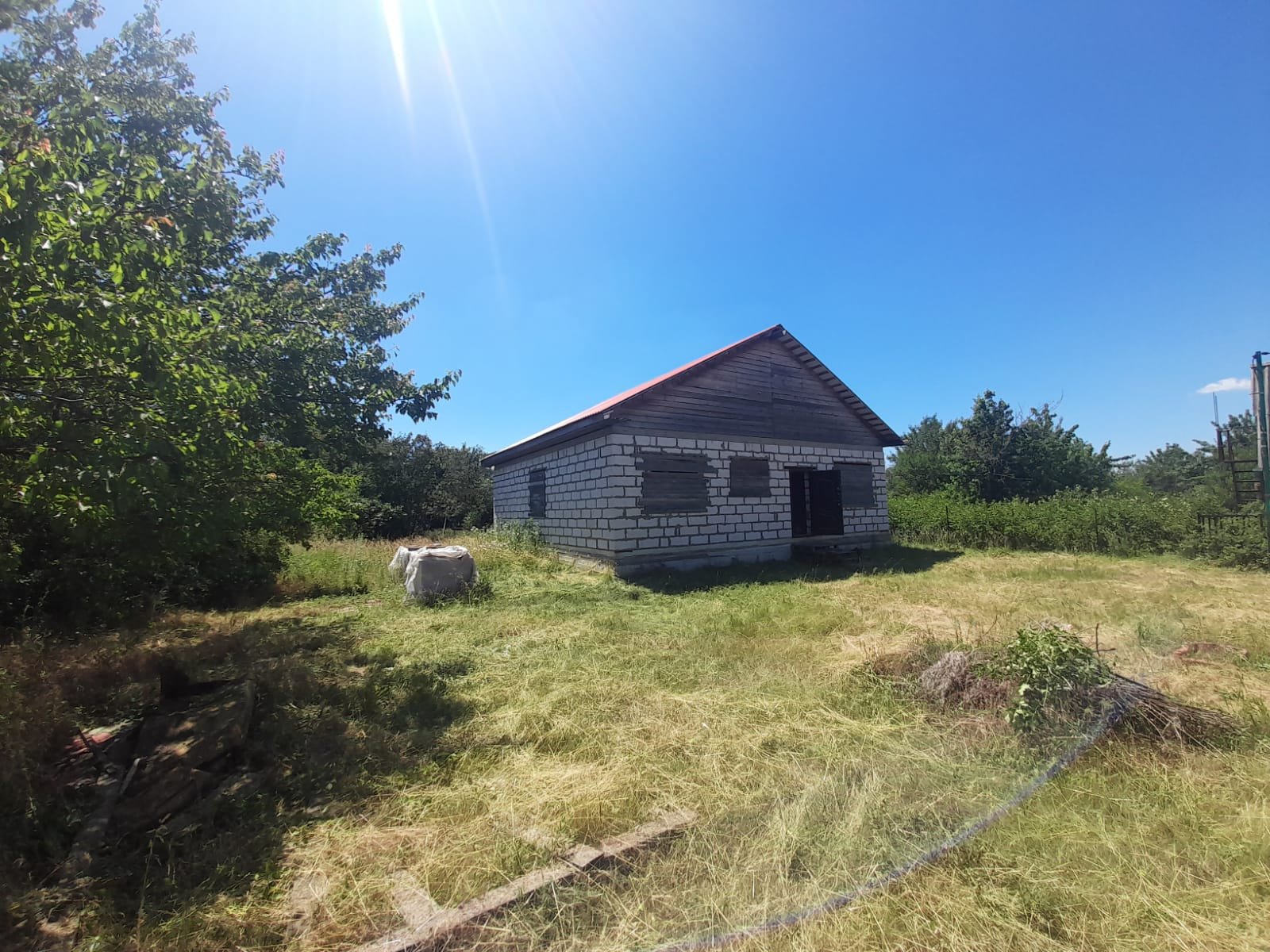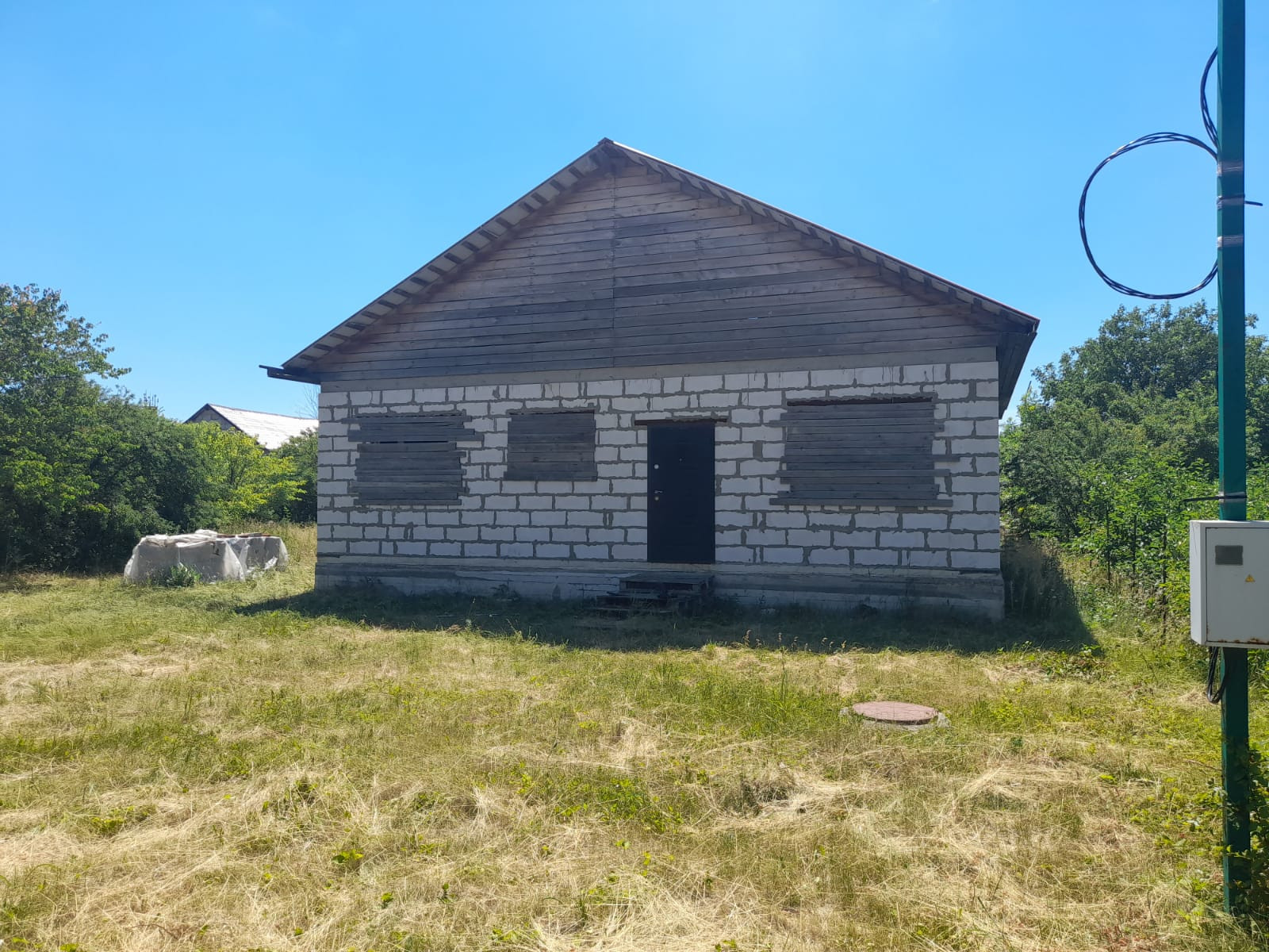 3 спальни, кухня-студия, большой коридор, котельная, санузел совмещен. Городская прописка.Окна металлопластик. Канализация выведена, сливная яма 2х2м ширина, 4м глубина. Стройвариант. Вода в дом заведена, вода питьевая централизованная со скважины 50м. Свет подведен, новый лэп 220-380 Вт, газ по меже.