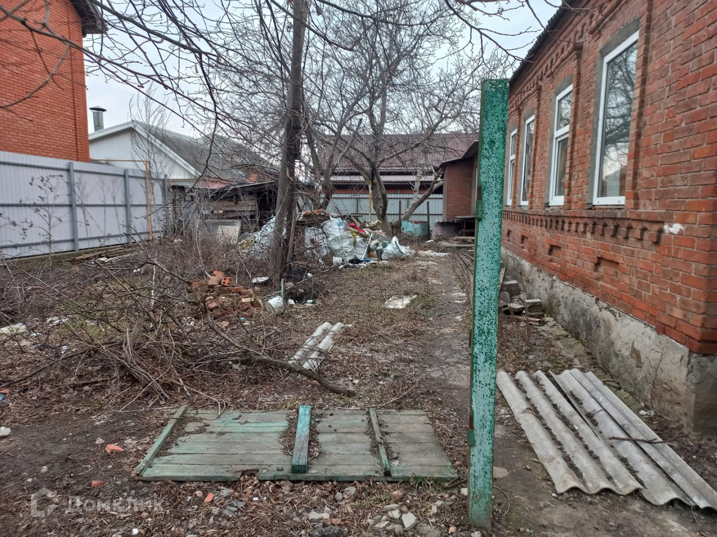 Продаётся просторный 4-комнатный дом. Нужен ремонт либо под снос. Общая площадь 93.3 кв.м, площадь участка 4 сотки. Совмещенный санузел. Дом 1-этажный, саманный, обложенный кирпичом, построен в 1965 году. Бетонный фундамент. Крыша из шифера. Категория земли ИЖС. В объекте требуется ремонт.