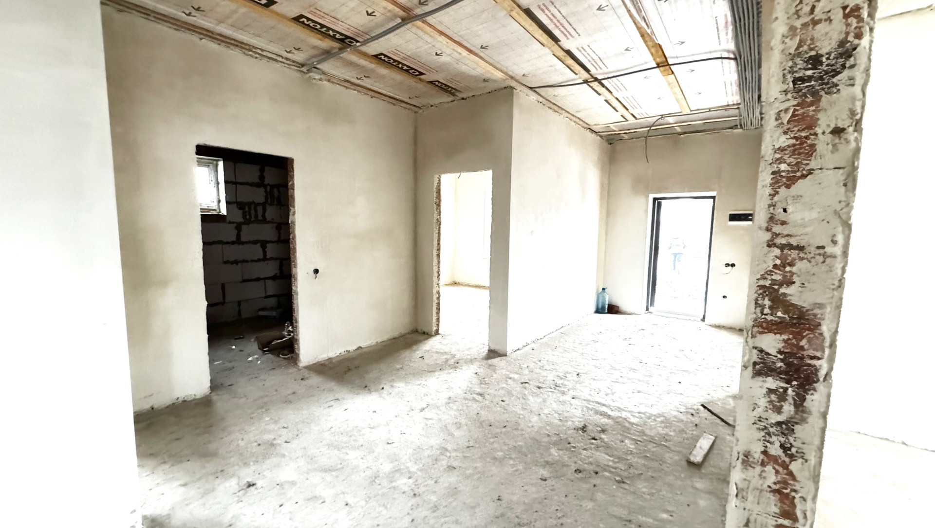 В доме выполнена пред чистовая отделка, стены готовы под обои, на полу полусухая стяжка. Тёплые полы + радиаторы. Газовый двухконтурный котёл.