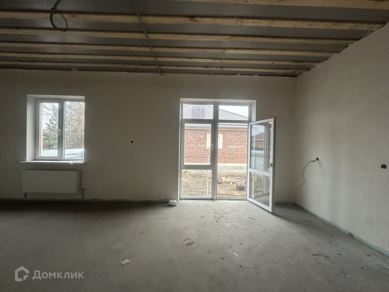 - чистовая отделка (выполнена штукатурка стен под обои, стяжка пола)
