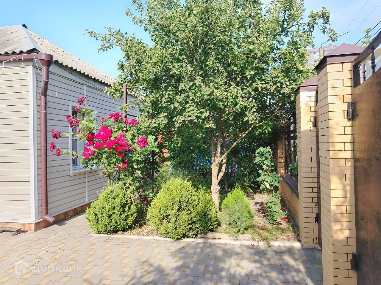 Во дворе плитка, своя благоустроенная баня, прочный навес, качественно построенный забор.
