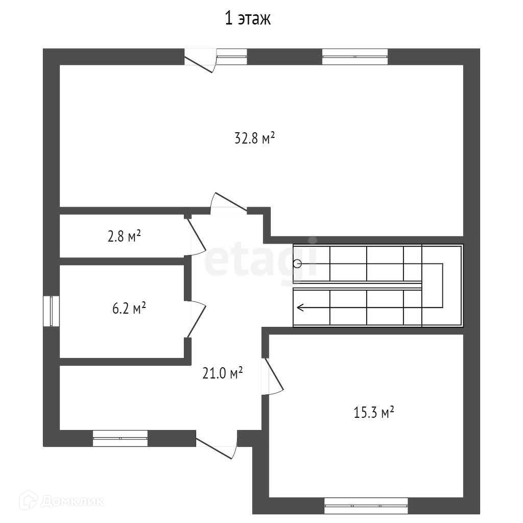На первом этаже: кухня-гостиная 34 кв.м., спальня, гардероб, санузел совмещённый, прихожая.