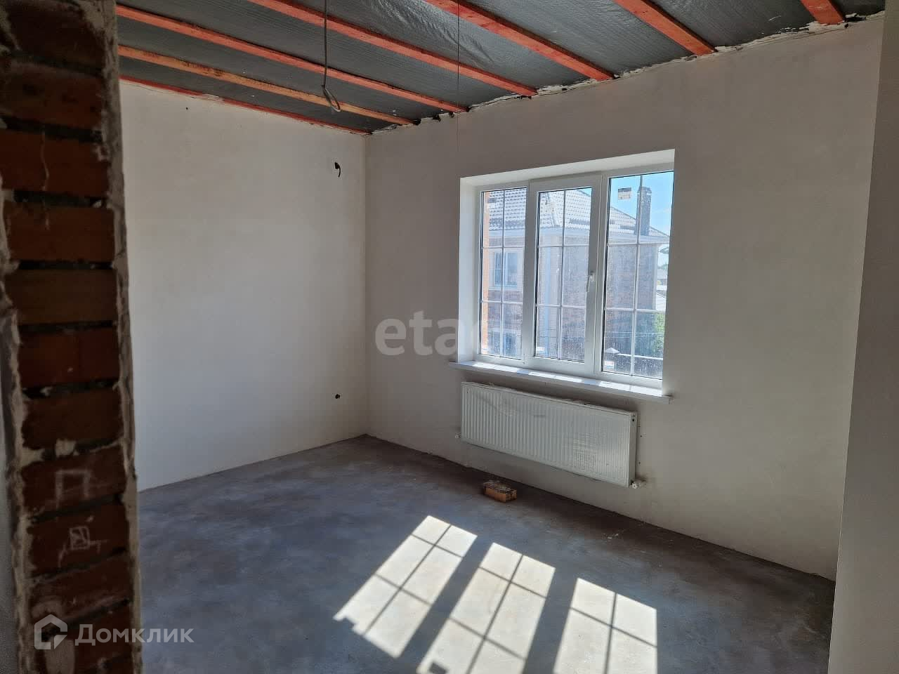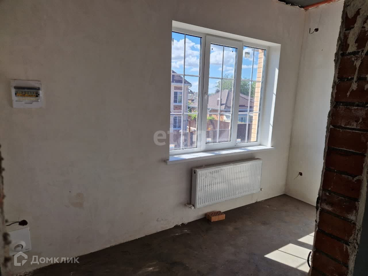 Площадь дома 163 м2. Состояние - предчистовая отделка. Разводка электрики, отопление на первом этаже тёплые полы во всех комнатах, на втором этаже тёплый пол в сан узле, площадь перед санузлом и перед лестницей, в комнатах батареи. Коммуникации заведены в дом. Установлен двухконтурный газовый котёл.