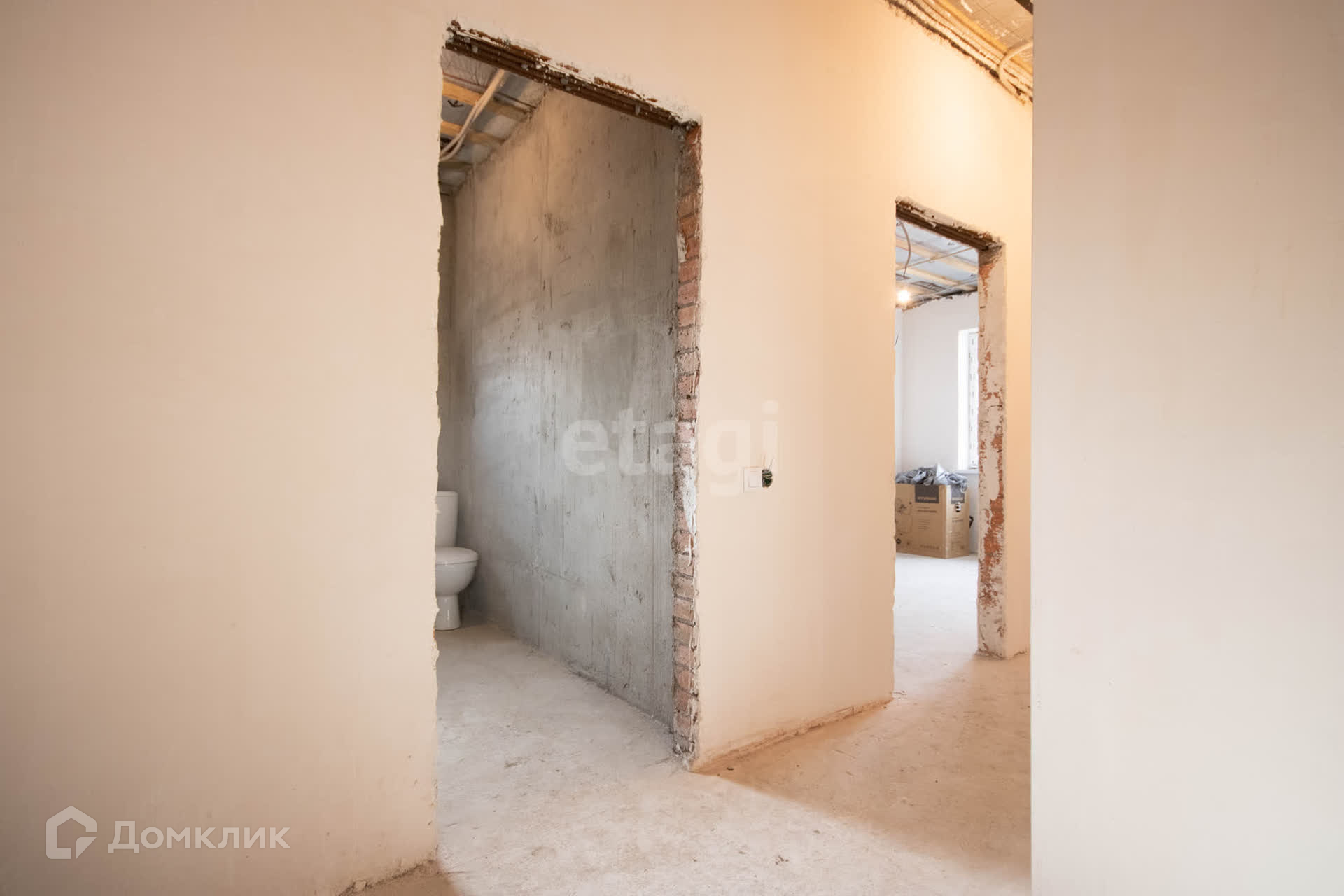 Полностью под чистовую отделку: сделана стяжка, штукатурка, шпатлевка, отопление, установлены радиаторы.