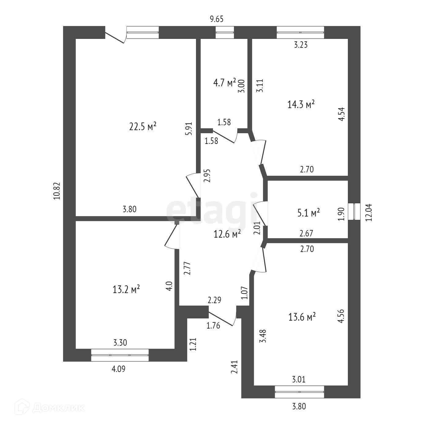 3 больших спальни по 14 кв.м. и кухня-гостинная-22 кв.м.