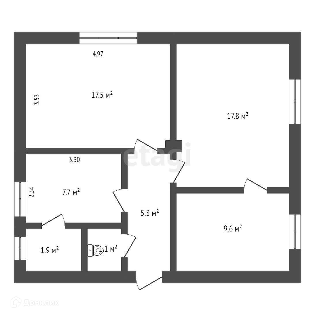 Общая площадь квартиры - 60,5 м2