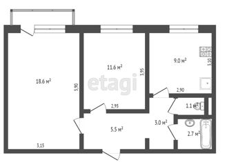 Общая площадь: 54.6 м2