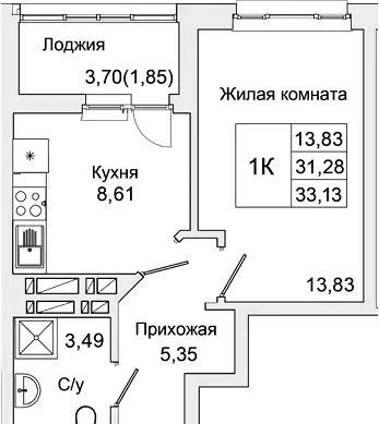 Общая площадь 33 м2