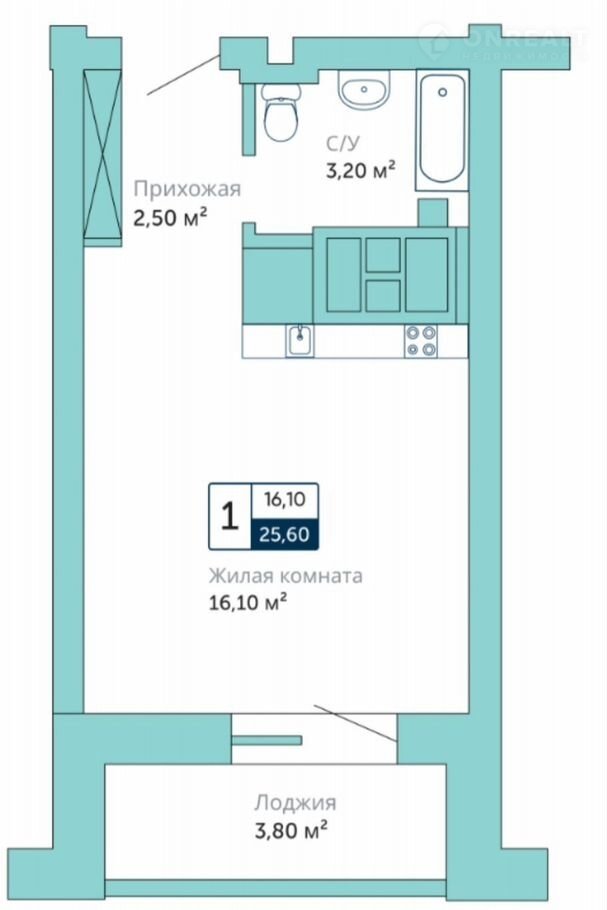 Общая площадь 25.6 м2