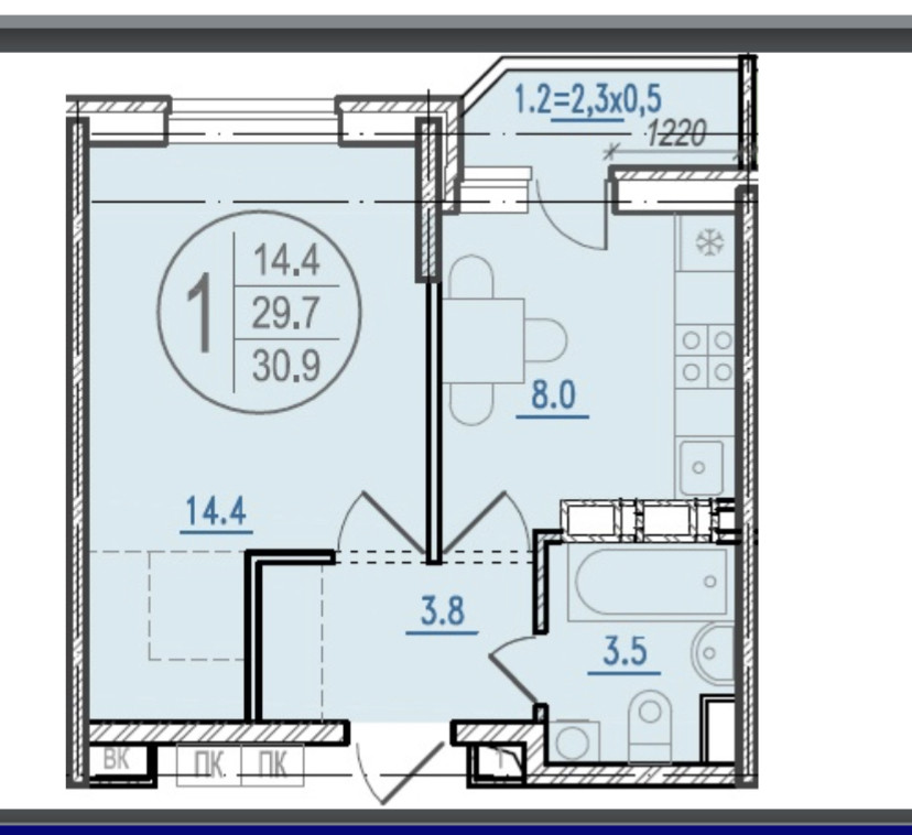 Общая площадь 30.9 м2
