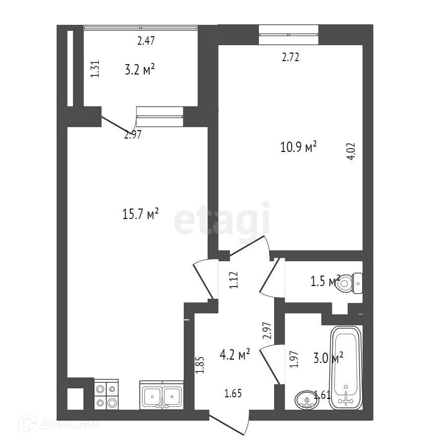 Общая площадь 35.3 м2