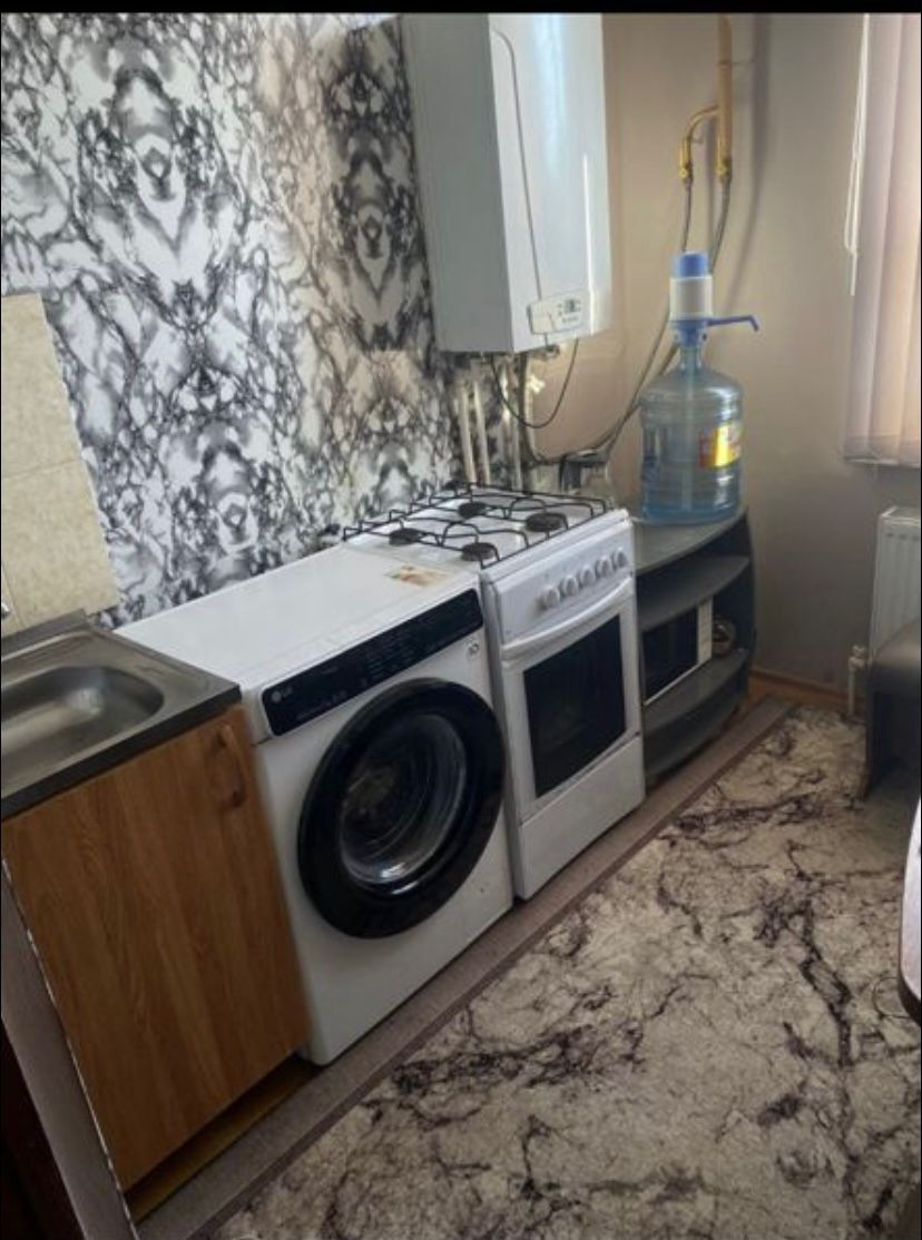 Мебель остается частично- мини диван, стенка, тумба на кухне.