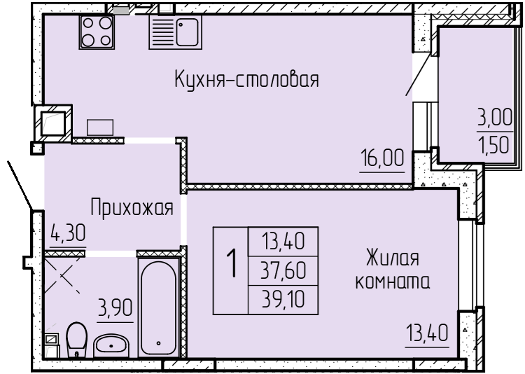 Балкон, лоджия 1 балкон
