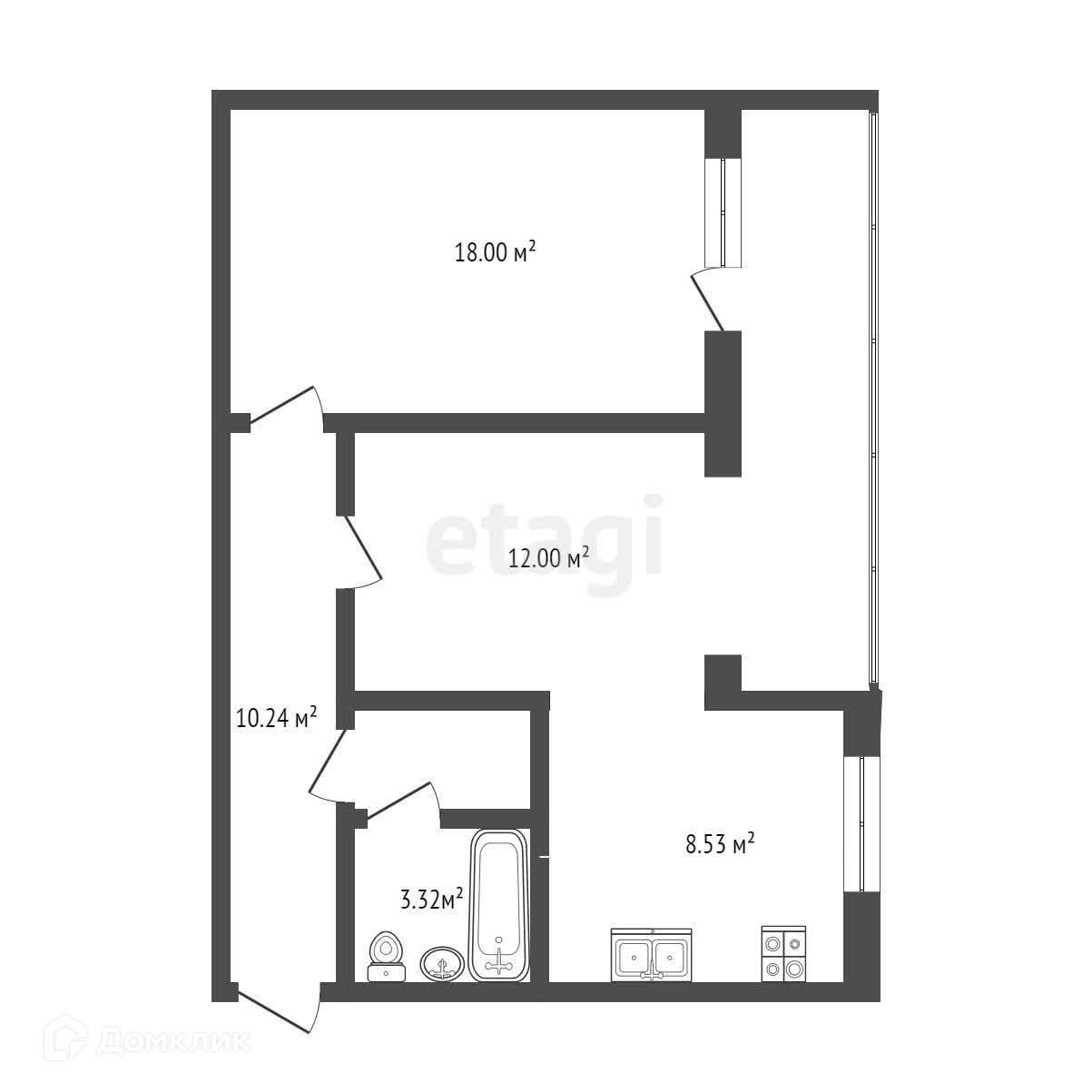 Балкон, лоджия 1 балкон