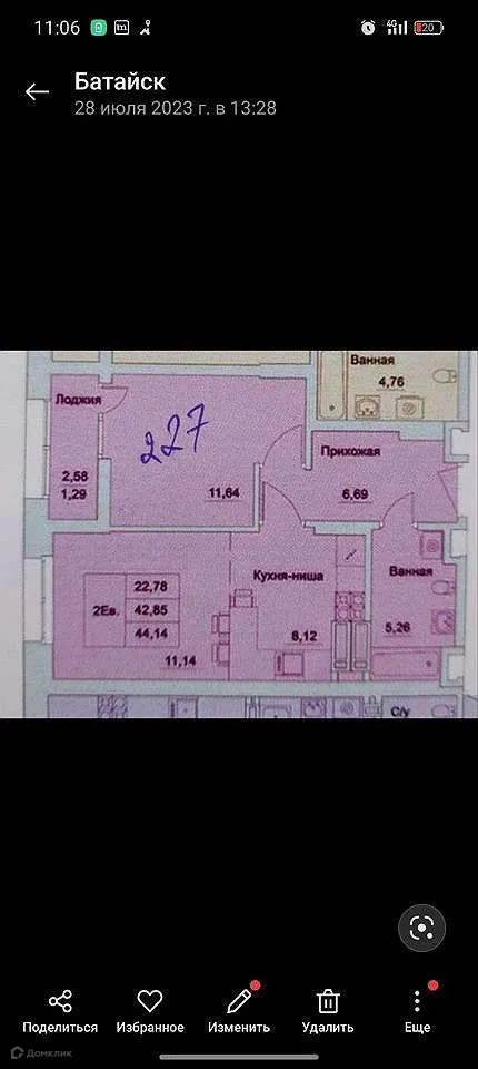 Общая площадь 44 м2
