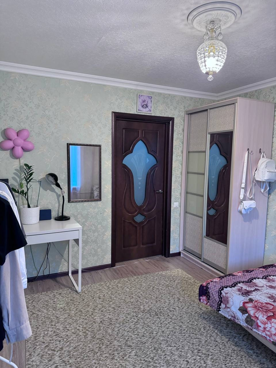 Двухкомнатная квартира в крепком кирпичном пятиэтажном доме. Общая площадь 49,6м2, высота потолков -2,7м, ванная и туалетная комната-раздельные. Окна зала выходят на север, а кухни и комнаты -на юг.