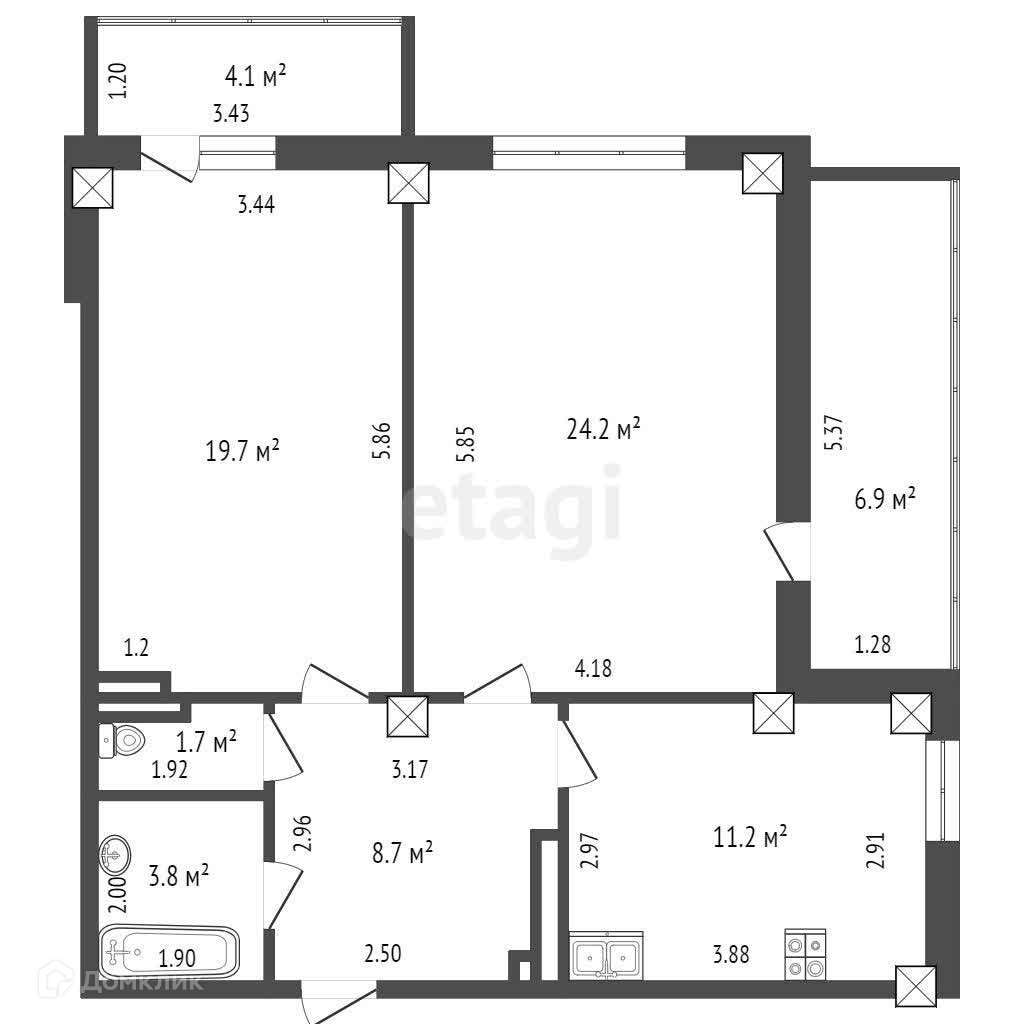 Общая площадь 69.3 м2