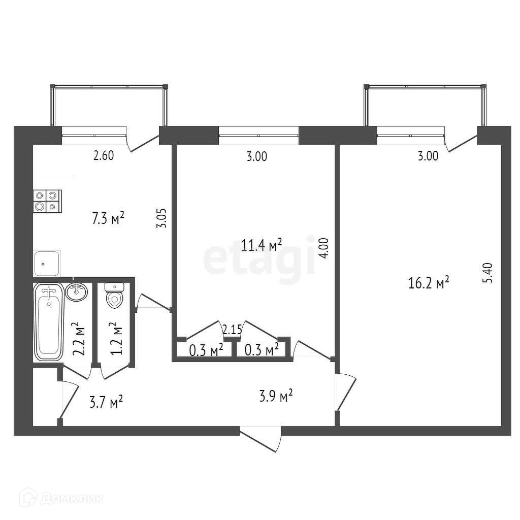 Количество комнат 2