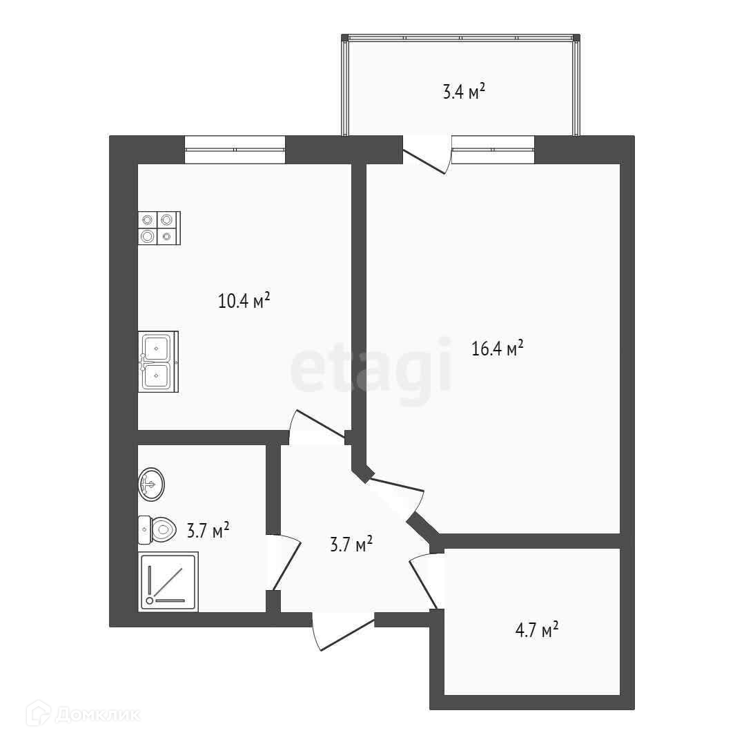 1-комнатная квартира, 39.9 м2, этаж 3 / 3, на продажу в Батайске, Кооперативная улица, 17