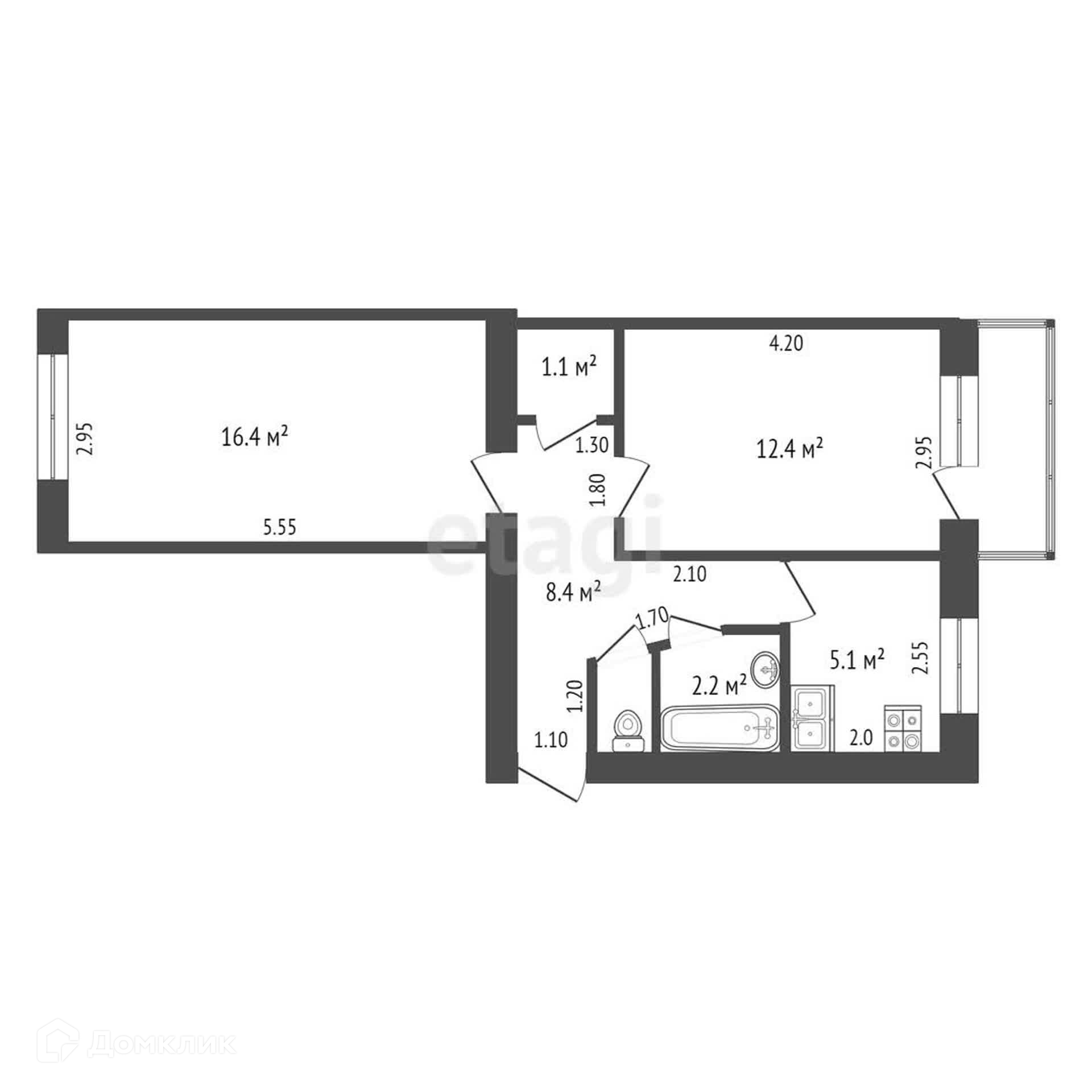 Общая площадь 46.4 м2