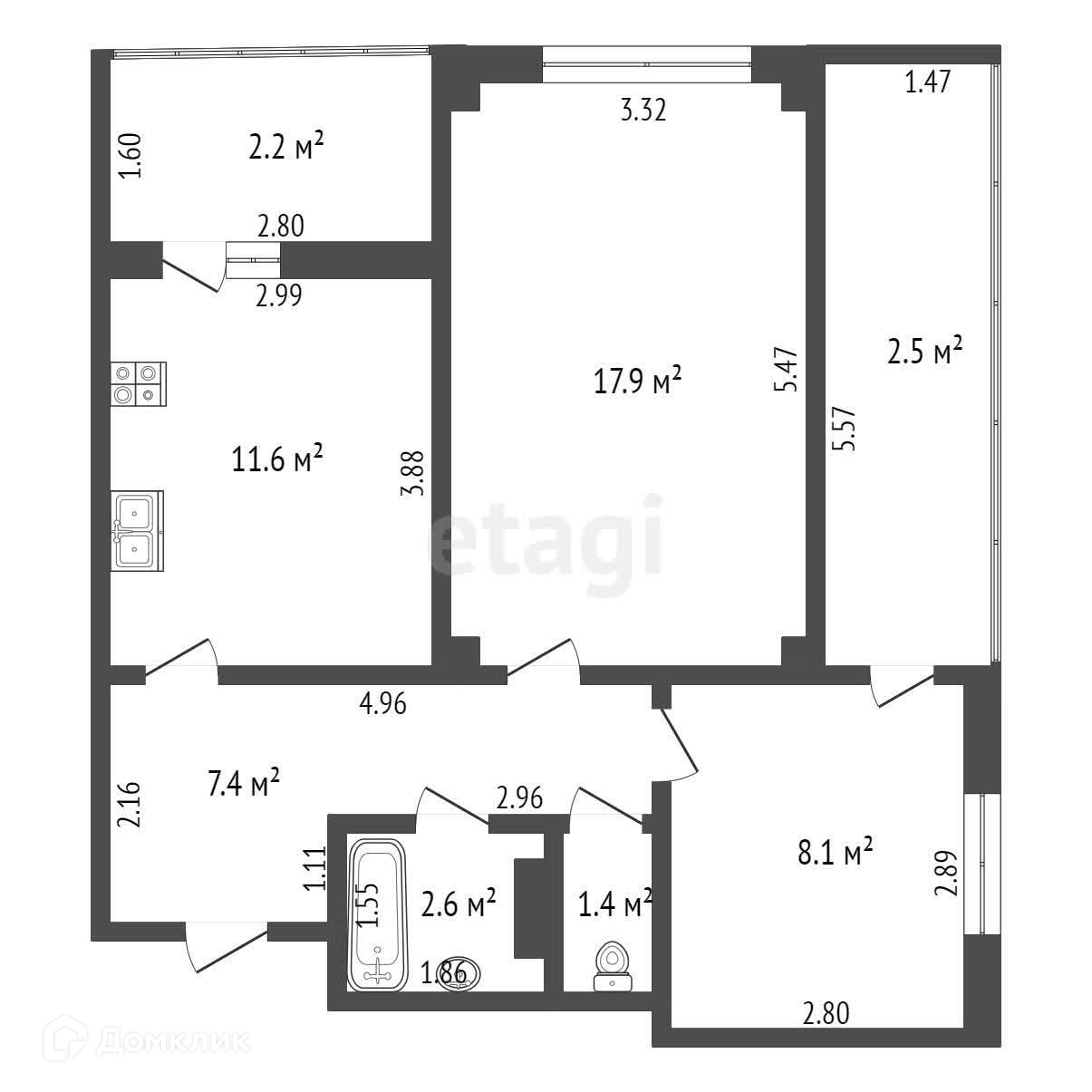 Общая площадь 60 м2