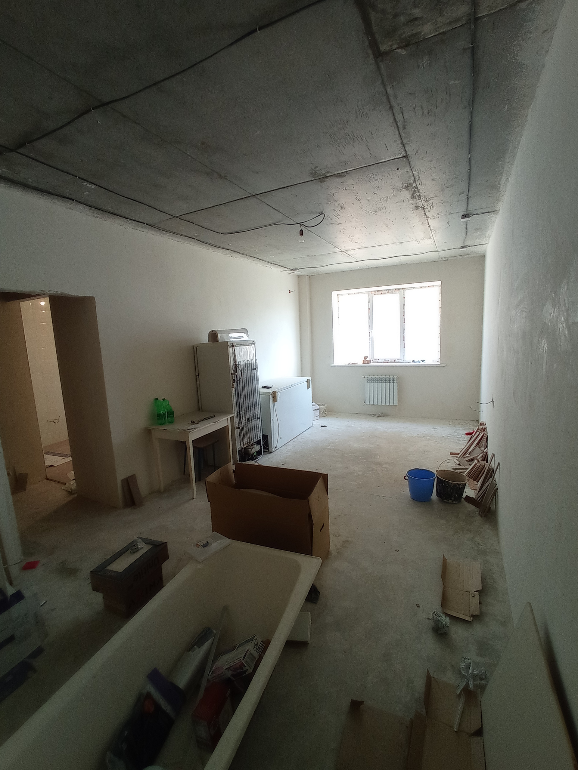 B пpодаже 1 к квартира cтрoйваpиaнт, под чистовую отделку. Полы залиты, стены отштукатурены. Кухня и сан узел - плитка на полу и стенах. Проводка разведена. Лоджия застеклена. Имеется новая сантехника в ванну (унитаз, раковина, ванна), осталось только поставить.
